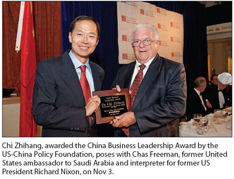 Chi has become a strong advocate for the loosening of visa restrictions for Chinese visitors, giving speeches and lobbying US government agencies. On Nov 3, Chi was given the China Business Leadership Award for his "distinguished contribution to US-China relations" by the US-China Policy Foundation.