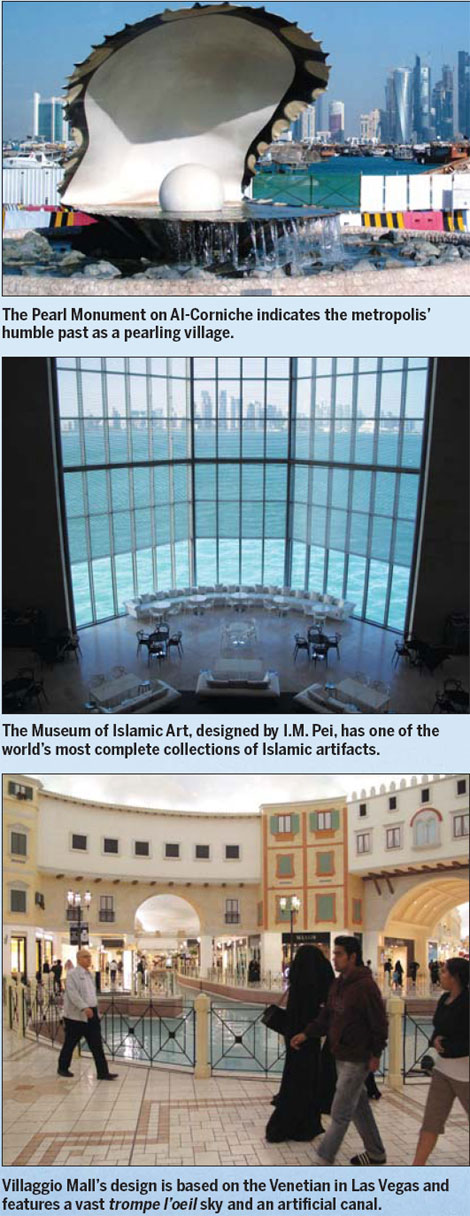 One of the first sights you see when landing at Doha International Airport is the skyline of West Bay, a waterfront of skyscrapers reminiscent of New York's Manhattan or Shanghai's Lujiazui but with a more surreal feel. From the airport, West Bay looks like an illusion created by a mirage. Get up close, and you will find a group of buildings with quirky architecture that seems to have emerged from nowhere, such as the thermos-shaped Doha Tower designed by Jean Nouvel and the pyramidal Sheraton Hotel. Nothing indicates Doha's previous incarnation as a pearling village, except the Pearl Monument on Al-Corniche. "People don't like old things here," says Mansour Mechmech, a sales executive of Kempinski Residences & Suites, one of the high-rises in West Bay. "Old houses have been demolished to make room for the new."