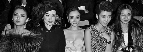 Last year, actress Fan Bingbing was fetching at Elie Saab's show at Paris Fashion Week, wearing a shiny camisole around her head. Last month, five up and coming Chinese stars raised a few eyebrows in their evening gowns during Paris Fashion Week, sitting side by side for the Christian Dior show.
