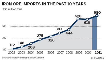 As the world's biggest ore importer, China accounts for about 60 percent of the global market.
