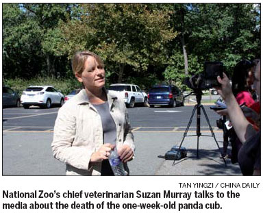 "It is not uncommon (that a panda cub dies within a week)," she said. "It is a very sensitive time during the first week when the cub doesn't have a good immune system and it is not very strong yet. But at the same time the cub was looking great, as was his mom, so we really didn't think there was anything wrong."
