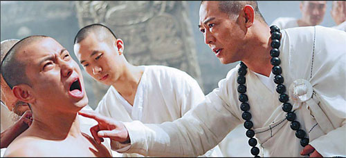 | Alfred Hsing (middle) plays a supporting role in the film, The Sorcerer and the White Snake, starring Jet Li (right). |