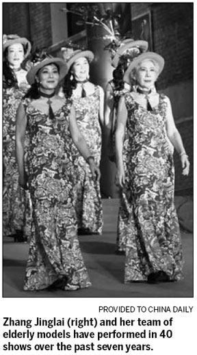The widow leads a team of about 30 retirees-turned-models in Beijing. The team is very busy with functions, including some in which they wear Zhang's designs.