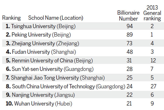 "Peking and Tsinghua are the best universities in China, which also produced the most rich people."