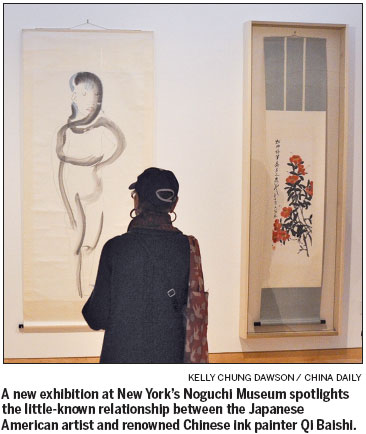In 1930, long before Isamu Noguchi would make his name as an internationally renowned Japanese American furniture designer and sculptor, the young artist spent six months in China under the tutelage of Qi Baishi, an ink painter widely considered to be among the most influential Chinese artists of the 20th century. His time with Qi, then in his 60s, had a deep impact on Noguchi's later work, a connection beautifully demonstrated by a new exhibit at New York's Noguchi Museum.