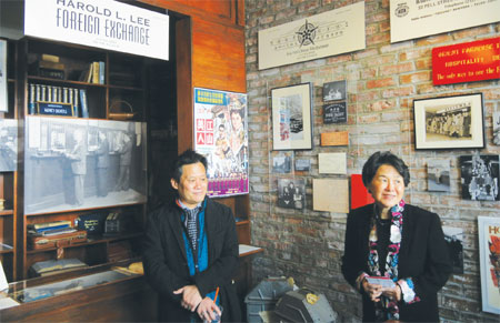 | Doug Lee and Sandra Lee, two descendants of a family that has been deeply involved in New York's Chinatown for 125 years, stand in front of a display at the Museum of Chinese in America's new exhibition "The Lee Family of New York Chinatown Since 1888." Kelly Chung Dawson / China Daily |