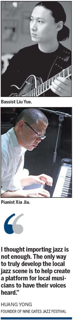 When Huang Yong was a young man studying bass, jazz music held little appeal. "When I was 20 years old, I couldn't bear listening to Miles Davis for 10minutes," says the founder of the Nine Gates Jazz Festival. "But when I started to explore jazz music on my bass, to read and understand its structure and its unique language by practicing pieces from Miles' album Kind of Blue, for example, I found that jazz was gradually sinking deep into my heart and soul, and it requires me to push my limits constantly." Since transforming from reluctant listener to true believer, Huang now heads the Nine Gates Jazz Festival, regarded as the only major jazz festival in the northern region of China. The annual event, now in its eighth year, kicks off on Dec 19 and will feature established jazz musicians from Beijing, Shanghai, Kunming and the United States, performing in different venues across the capital.