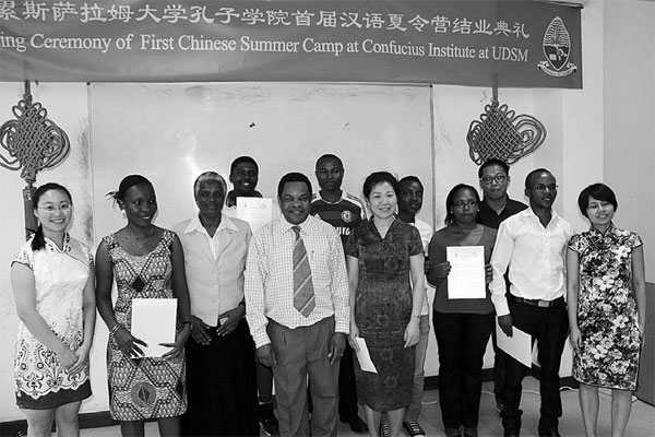 | Zhang Xiaozhen and her students at the closing ceremony of the first Chinese Summer Camp at the Confucius Institute of UDSM. Provided to China Daily |