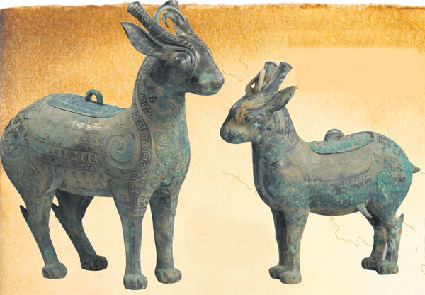 | The set of animal deity-shaped drinking vessels is one of the most precious finds from the Shigushan Tombs in Baoji, Shaanxi province. Photos Provided to China Daily |