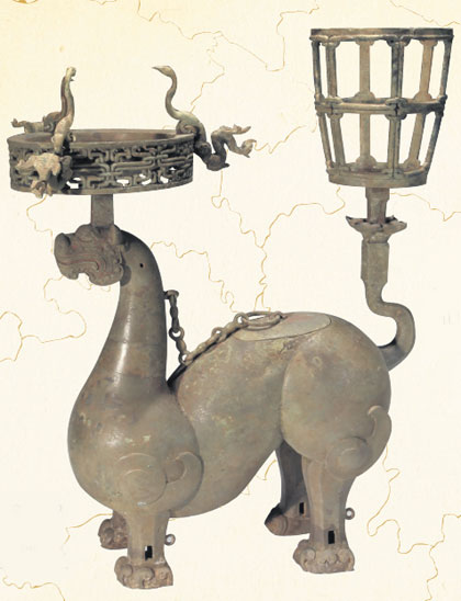 | A copper lamp from the Wenfengta Tomb, Suizhou, Hubei province. |
