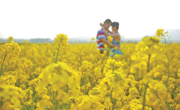 | A couple enjoys the spring in a rape flower field in Zaozhuang city of Shandong province. More and more young, educated and high-income Chinese couples are choosing not to have children. Li Zongxian / for China Daily |