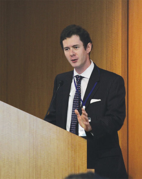 | New York: Expending energy Leo Lester, research fellow at the King Abdullah Petroleum Studies and Research Center in Saudi Arabia, speaks at a conference on China's energy use on Aug 1 in New York. The conference was hosted by the Chinese Culture and Business Development Center in North America. Amy He / China Daily |