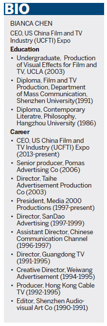 | Bianca Chen is CEO of US China Film and TV Industry (UCFTI) Expo. Provided to China Daily |