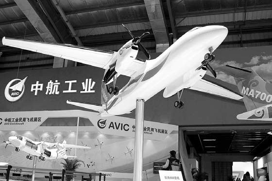 | An AVIC aircraft model on display at a recent exhibition in Zhuhai, Guangdong province. Provided to China Daily |