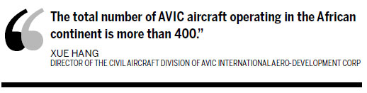 "The total number of AVIC aircraft operating in the African continent is more than 400," says Xue Hang, director of the civil aircraft division of AVIC International Aero-Development Corp, a sales and service provider wholly owned by AVIC.