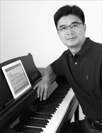 Wang Zhengsheng, 39, describes such music students as "ascetic monks". Wearing jeans, a blue t-shirt, and a pair of black semi-rimless glasses, the innovator says he believes that a smart piano integrated with mobile Internet can lower the barrier to musical skills.