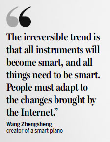 | Wang Zhengsheng names his smart piano 'Geek', which sounds lik the Chinese word for 'instant', implying quick learning.Provided To China Daily |