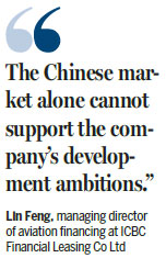 "The Chinese market alone cannot support the company's development ambitions and offshore leasing deals like this one will become increasingly important for us," said Lin Feng, managing director of aviation financing at ICBC Leasing.