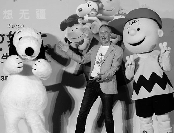 | US director Steve Martino appears at a media event in Beijing to promote his latest animated production, The Peanuts Movie. Jiang Dong / China Daily |