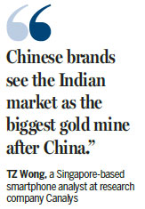"Chinese brands see the Indian market as the biggest gold mine after China," said TZ Wong, a Singapore-based smartphone analyst at research company Canalys.