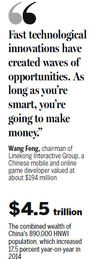 Wang Feng is the kind of successful tech entrepreneur whom private wealth bankers from Goldman Sachs to Credit Suisse would love to land as a client. He's chairman of Beijing-based Linekong Interactive Group, a Chinese mobile and online game developer valued at about $194 million - and Wang, 46, owns a 20 percent stake.