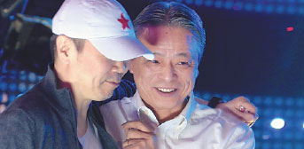 Yang Le (right) with his friend and singer-songwriter Cui Jian during a rock show. Photos Provided To China Daily |