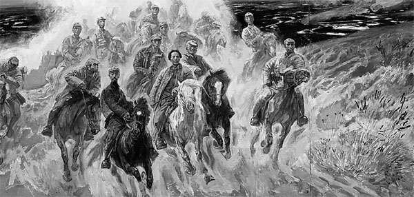 He applied a gray tone to indicate both the cold weather at the conference location and how it mattered to the fate of the Red Army, which was then at a critical moment in the Long March.
