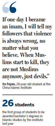 Ma, from Shihezi, a city in the Xinjiang Uygur autonomous region, came to Beijing to study at his "dream school" in 2011. Last year, he was one of the first 26 students to be awarded a bachelor's degree in Islamic studies by the institute, which had only awarded plain certificates of graduation before then.