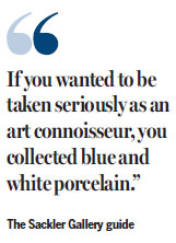 | The Sackler Gallery owns several pieces of Kangxi blue-and-white porcelain. These coveted pieces of pottery were sold throughout Europe during the late 19th century, though the best pieces were saved for the Chinese courts. Photos By Allan Fong / For China Daily |