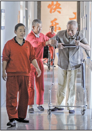 | A patient walks with the help of a wheeled walking frame at the Beijing Songtang Hospice, which offers care services for terminally ill patients.Photos By Zhang Yu / Xinhua |