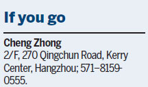 The restaurant is in the Midtown Shangri-La, Hangzhou, but has a much lower prices than other restaurants of the brand's hotels, he says. The average cost here for one person is about 100 to 120 yuan ($15 to $18) for lunch and 130 to 150 yuan for supper.