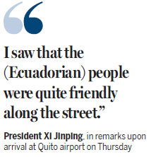 "I saw that the (Ecuadorian) people were quite friendly along the street," Xi said, adding that China aims to provide practical help for the people of Ecuador.