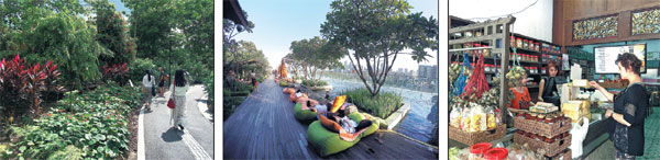 | From left: The Botanic Gardens; rooftop swimming pool of Hotel Jen Orchardgateway in Singapore; Kim Choo Kueh Chang, a timehonored food shop. Photos By Yang Feiyue |