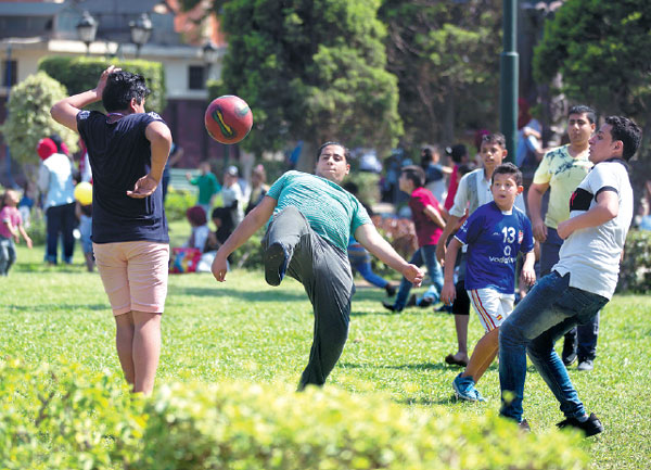 | People play football at a public garden during Sham el-Nessim in Cairo, Egypt, on Monday. The holiday signifies the arrival of spring and has been celebrated since the days of the Pharaohs. Amr Nabil / Associated Press |