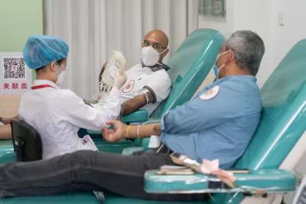 Nearly 100 Indian residents donate blood at the Shanghai Blood Center on September 3. [Photo by Gao Erqiang / chinadaily.com.cn]