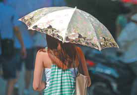 | Many people use umbrellas to protect themselves against ultraviolet rays in summer. Meng Delong / for China Daily |
