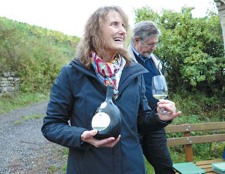 | Gabi R. Rupp introduces local wine and grape varieties at the vineyards of the Beckstein village in Baden-Wuerttemberg. |