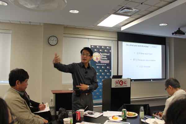 Dr. Songnian Zhou, former CEO, chairman and a co-founder of Platform Computing, gives a speech titled “Learning from the Achievers” at the Building a Successful Company Networking Series, hosted by the Association of Chinese Entrepreneurs (ACCE) in partnership with the Hong Kong Chinese Business Association and the Taiwan Entrepreneurs Society Taipei/Toronto on November 15, 2012 at Markham Convergence Centre, Ontario, Canada. (Photo: Na Li/ China Daily, Toronto) |