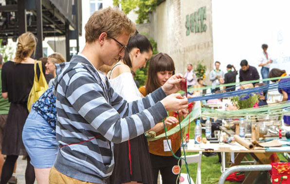| People join in the Participatory City project launched by the BMW Guggenheim Lab in Berlin. Provided to China Daily |