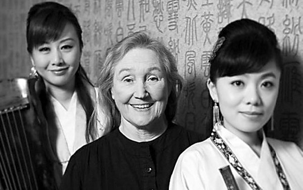 | Lindqvist with Deng Hong (left) and Chen Shasha, two Chinese musicians who perform for guqin concerts curated by Lindqvist. Provided to China Daily |