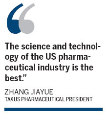On why now is a good time for Taxus Pharmaceutical, a privately-owned company, to grow in the US, Zhang said that having been in the pharmaceutical industry for decades, he always had a desire to expand overseas. "Plus, the science and technology of the US pharmaceutical industry is the best," he said.