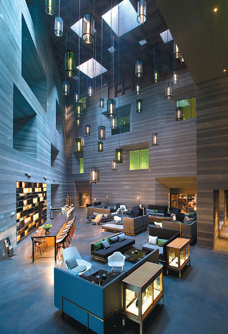 | Textured high walls and subdued lighting in Latitude 36 is a reference to the Longmen Grottoes nearby. |