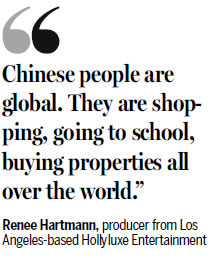 "Chinese people are global. They are shopping, going to school, buying properties all over the world. That's where we come in. We can show them around Hollywood," said Renee Hartmann, a producer from Los Angeles-based Hollyluxe Entertainment.