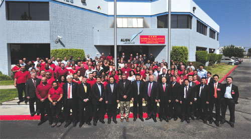 | Employees of AVIC International USA and Align Aerospace celebrate the acquisition of Align by AVIC International USA in April 2015. Provided to China Daily |