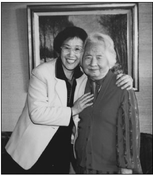 | Author Zhang Yawen (left) visits Qian Xiuling, who saved more than 100 Belgians from the Nazis, in 1999. |