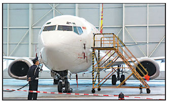 | A Yangtze River Airlines jet on the tarmac in Shanghai. Provided To China Daily |