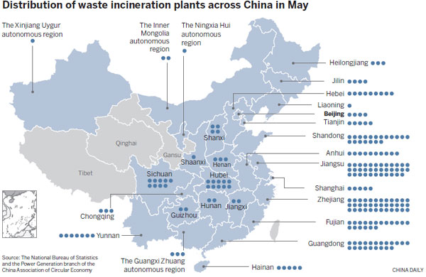 Those advantages saw the number of incineration plants rise to 188 in 2014 from 104 in 2010, according to government data. Meanwhile, a survey conducted by the Power Generation Branch of the China Association of Circular Economy, an industry association in Beijing, estimated that the number of facilities has doubled in the past six years, reaching 225 by May.