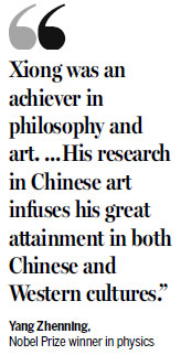 "Xiong was an achiever in philosophy and art. He was also a calligrapher. His research in Chinese art infuses his great attainment in both Chinese and Western cultures," Yang said at the donation ceremony.