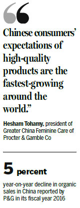 Hesham Tohamy, president of Greater China Feminine Care, said Chinese women are now very demanding about quality and are willing to pay more to get better quality.