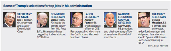 Wu Xinbo, director of the Center for American Studies at Fudan University in Shanghai, said the former executives among Trump's Cabinet choices will "inject prudence and pragmatism into policymaking procedures".